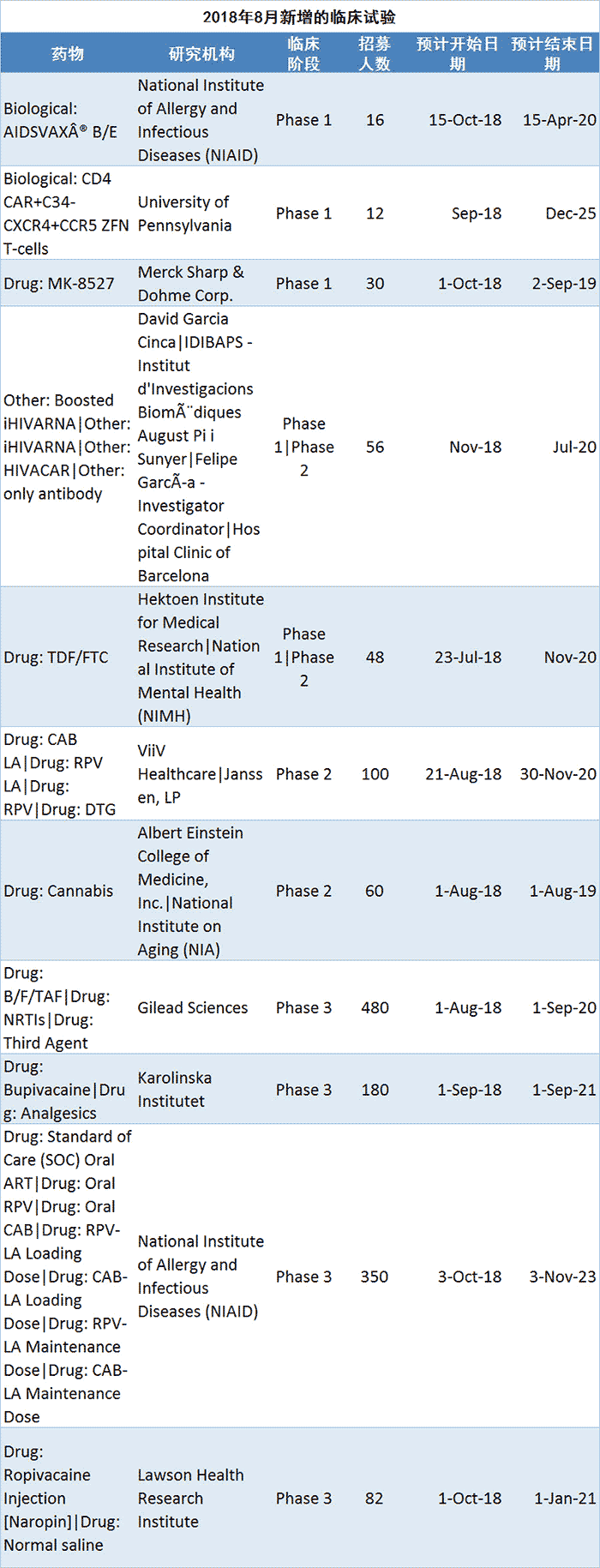 盘点:9月最新艾滋病临床试验 (附表)